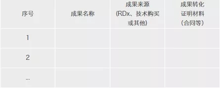 (1)成果名称、成果来源于RDx、技术购买或其他有关说明;